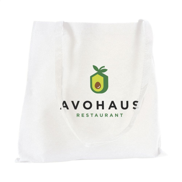 Einkaufstasche mit langen Henkeln aus "non woven" Material (80 g/m²): eine superleichte, starke Kunstfaser. Fassungsvermögen ca. 8 Liter.