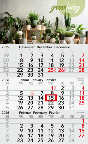 Für eine bessere Übersicht und um schnell einen Überblick über die nächsten 3 Monate zu erhalten, gibt es den 3-Monatskalender, bei dem 3 Monate auf einem Blatt dargestellt sind.